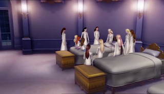 Derek visits the castle that night and since he can’t find the princesses he decide to look for them in their room, he begins to dance just like he has seen Genevieve dance he is able to enter the magical world where the twelve princesses are! Rowena who has been spying on them is also able to get in to the magical world; she then steels some of the golden flowers that make wishes come true.